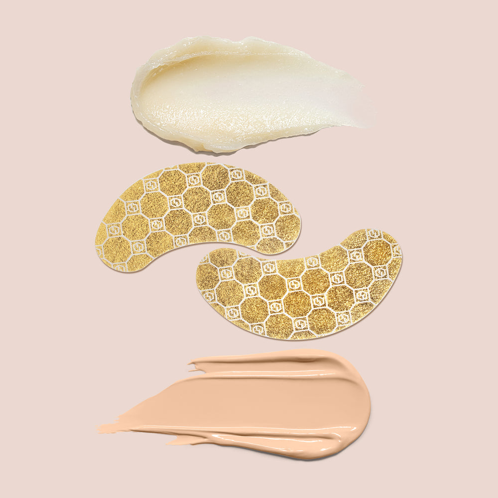 How To Use It: Remove the eye patches from the clear film protector. Apply onto clean, dry under eyes with the design side facing up. Leave on for 15 minutes and discard after use. Gently pat the remaining serum into skin. Apply a pea-sized amount of the slugging balm thinly under each eye 30 minutes before bedtime. Use a soft washcloth and cleanser to remove excess in the morning. Apply a thin layer of the Liquid Concealer to desired areas directly from the applicator using fingers to blend, or apply with the Essential Precision Concealer Brush.