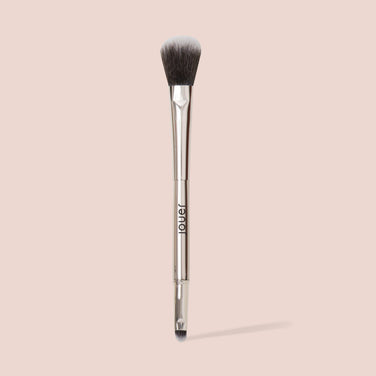 - This dual ended brush features two essential tools in one versatile design. One end includes a soft, fluffy brush designed for seamless concealer application or all-over powder, while the other features a precise liner brush for defining the eyes with control and accuracy.