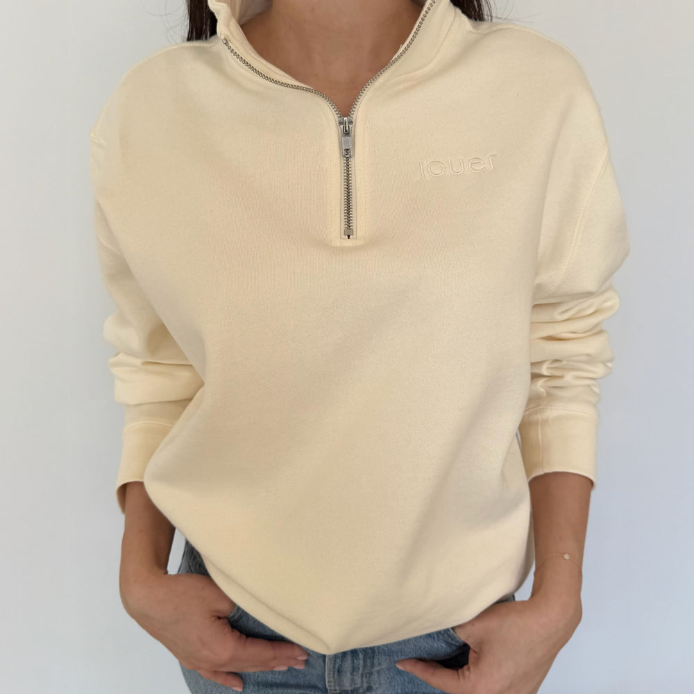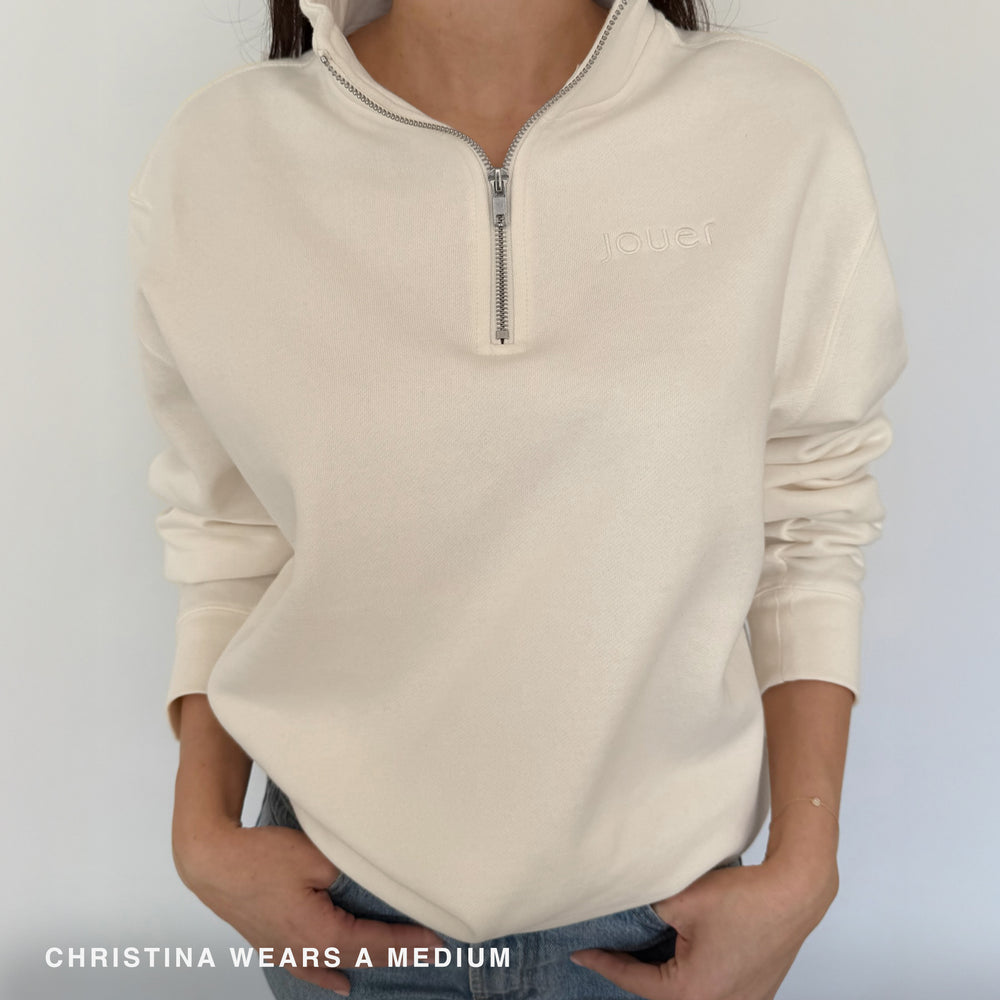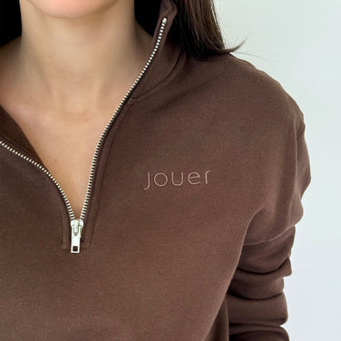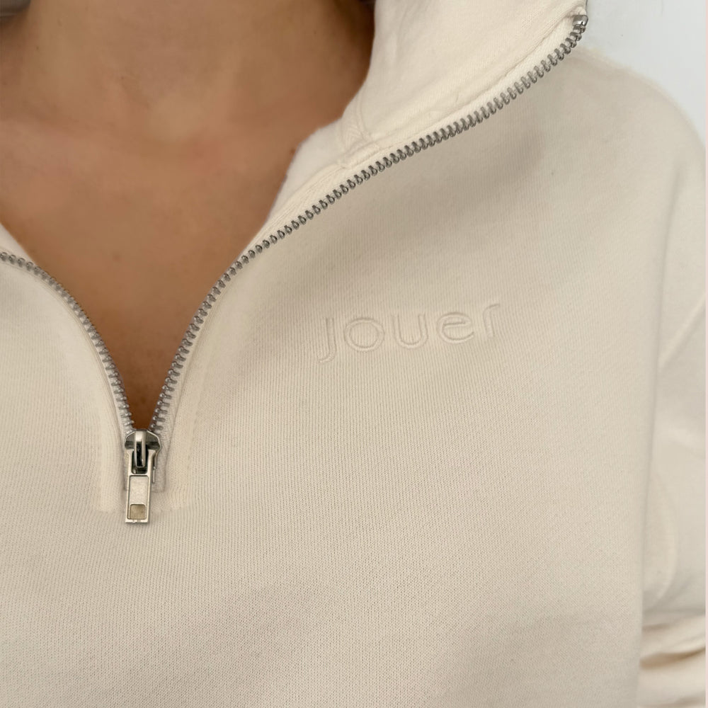 An effortlessly chic quarter zip, finished with subtle Jouer embroidery for everyday comfort and style.
