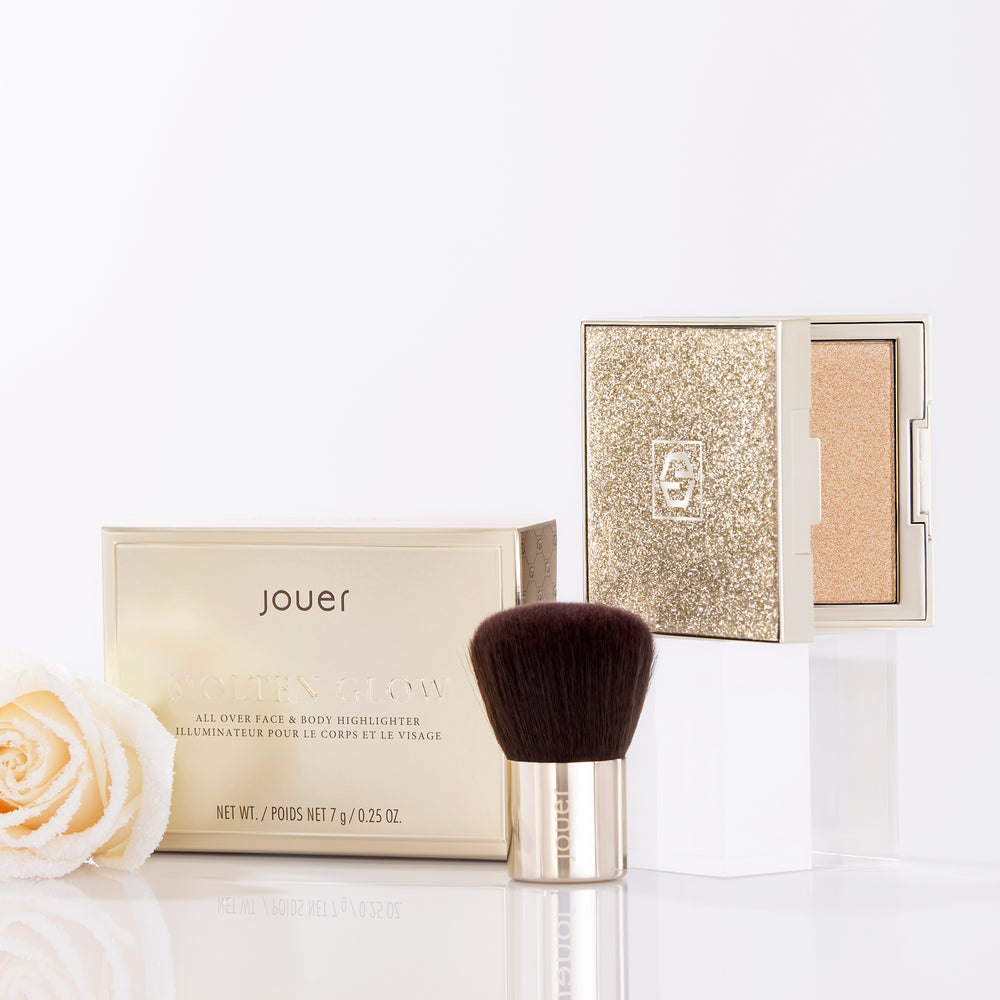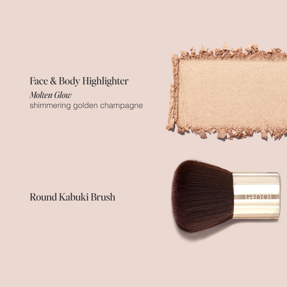 Our luxurious face and body highlighter, sold out three times, delivers the ultimate luminous, radiant glow in just one swipe with the included kabuki brush. Its buttery formula lets you build and customize your perfect level of radiance.