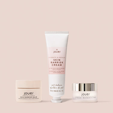 Hydrate & Repair Skin Barrier Cream: Aqua/Water/Eau, Butyrospermum Parkii (Shea) Butter, Cocos Nucifera (Coconut) Oil, Bis-Diglyceryl Polyacyladipate-2, Glycerin, Theobroma Cacao (Cocoa) Seed Extract, Cetearyl Olivate, Sorbitan Olivate, Simmondsia Chinensis (Jojoba) Seed Oil, Propanediol, Sodium Polyacrylate, 1,2-Hexanediol, Olea Europaea (Olive) Fruit Oil, Citric Acid, Xanthan Gum, Cetyl Palmitate, Sorbitan Palmitate, Caprylhydroxamic Acid, Tocopheryl Acetate, Vitis Vinifera (Grape) Seed Oil, Citrus Limon (Lemon) Peel Oil, Citrus Nobilis (Mandarin Orange) Peel Oil, Juniperus Mexicana Oil, Pelargonium Graveolens Oil, Ubiquinone, Eucalyptus Globulus Leaf Oil, Lavandula Angustifolia (Lavender) Oil, Sodium Hyaluronate, Phenoxyethanol, Calendula Officinalis Flower Extract, Equisetum Arvense (Horsetail) Extract, Allantoin, Thioctic Acid, Maltodextrin, Aloe Barbadensis Leaf Juice, Citral, Citronellol, Geraniol, Limonene, Linalool.