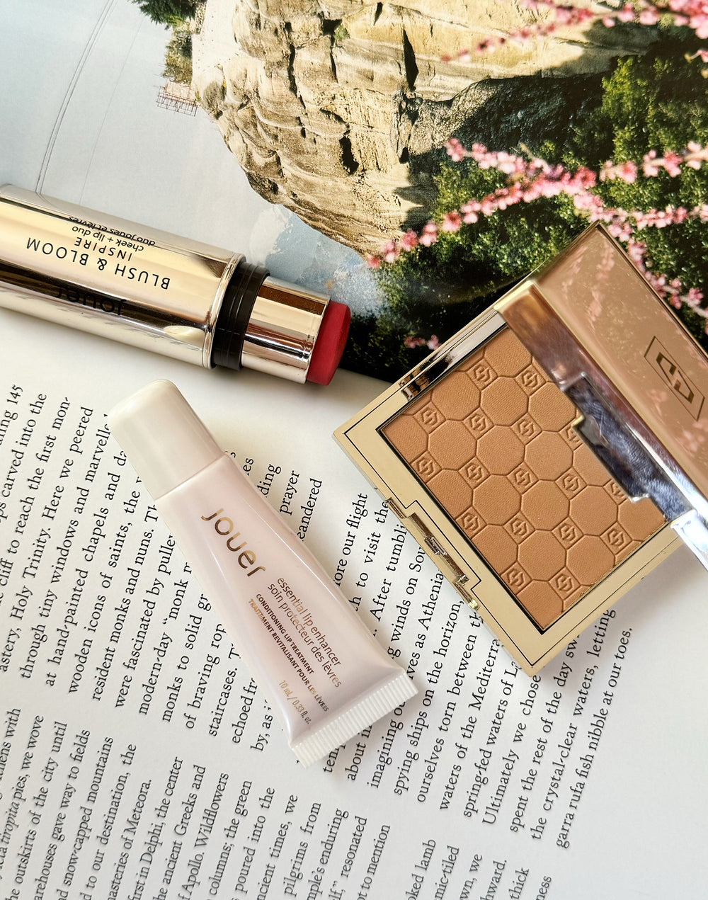 Each formula is infused with skin-loving ingredients that enhance your complexion while you wear them. The soft-focus powder blurs with hyaluronic acid to hydrate and smooth, the blush melts in seamlessly with brightening antioxidants, and the lip enhancer nourishes with shea butter and jojoba seed oil for lasting comfort.