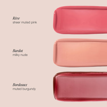 A swipe of shine that feels as good as it looks. This trio of tinted lip oils wraps lips in sheer color and nourishing hydration, perfect for every moment. With best-selling Rêve, effortlessly chic Bardot, and the new bold Bordeaux, it’s the ultimate edit for gloss lovers.